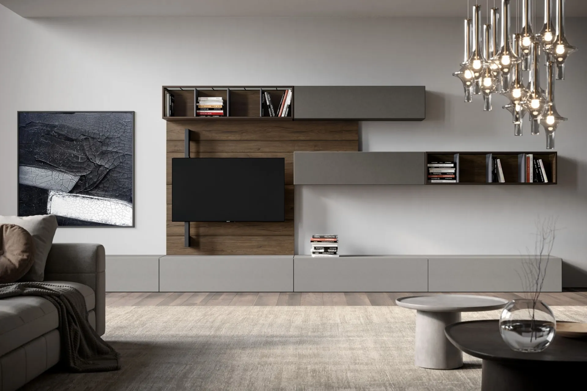 Vuoi ammobiliare un soggiorno operativo e pratico? Ti presentiamo la parete attrezzata Rebel Living 01 Fimar dalle linee decise moderne.