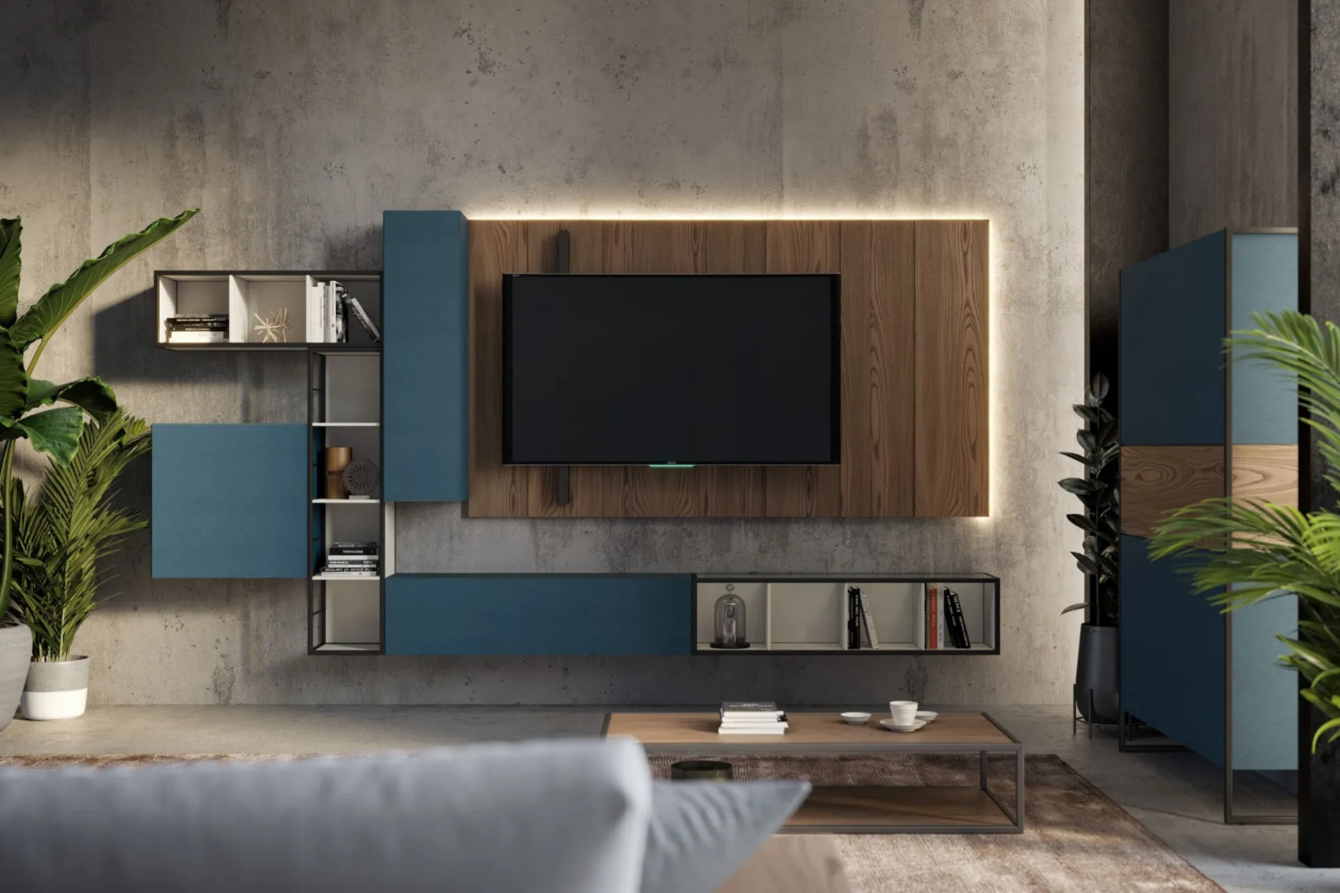 Vuoi progettare un soggiorno operativo e pratico? Ti presentiamo la parete attrezzata Rebel Living 06 Fimar dalle linee decise moderne.