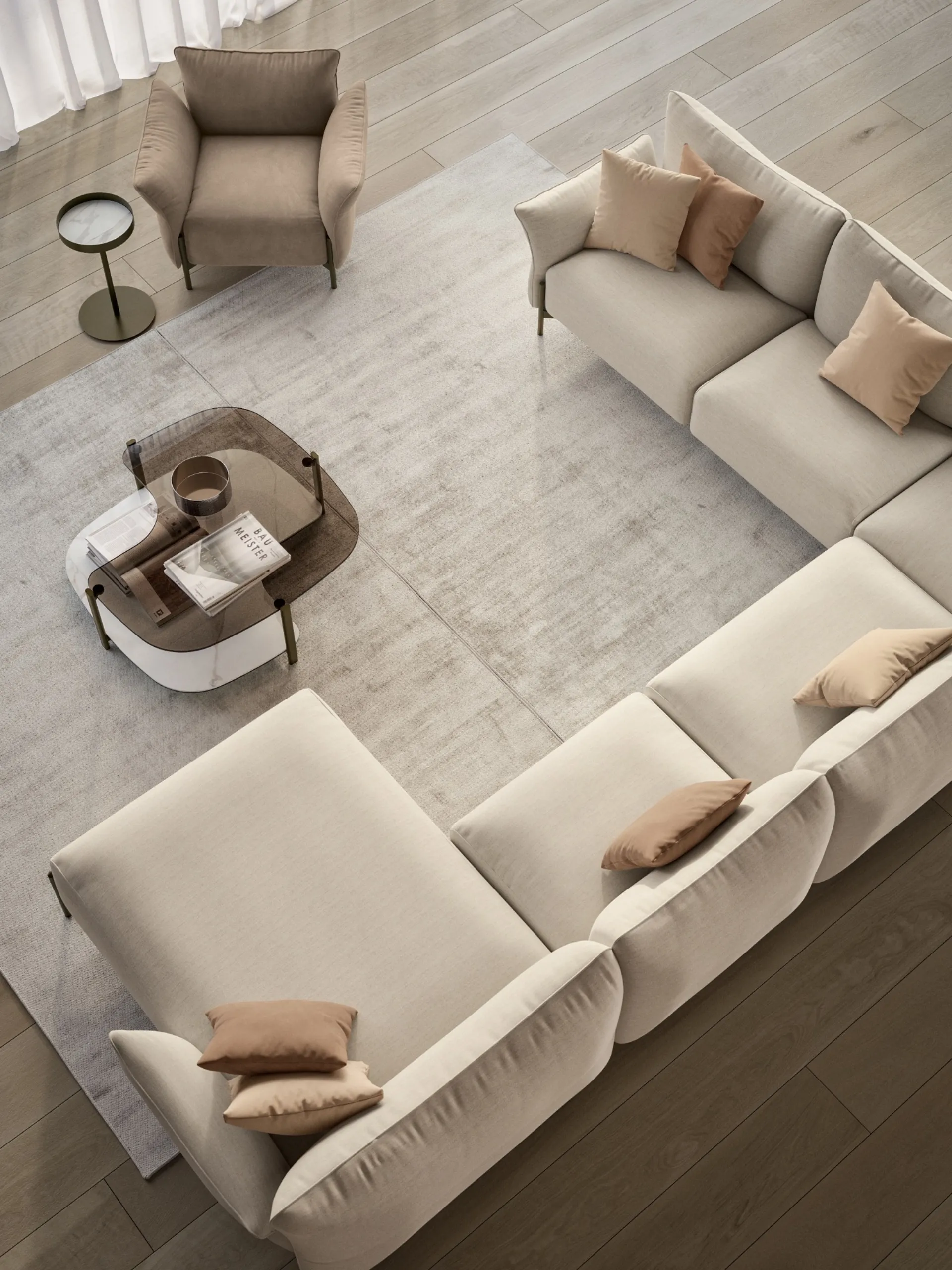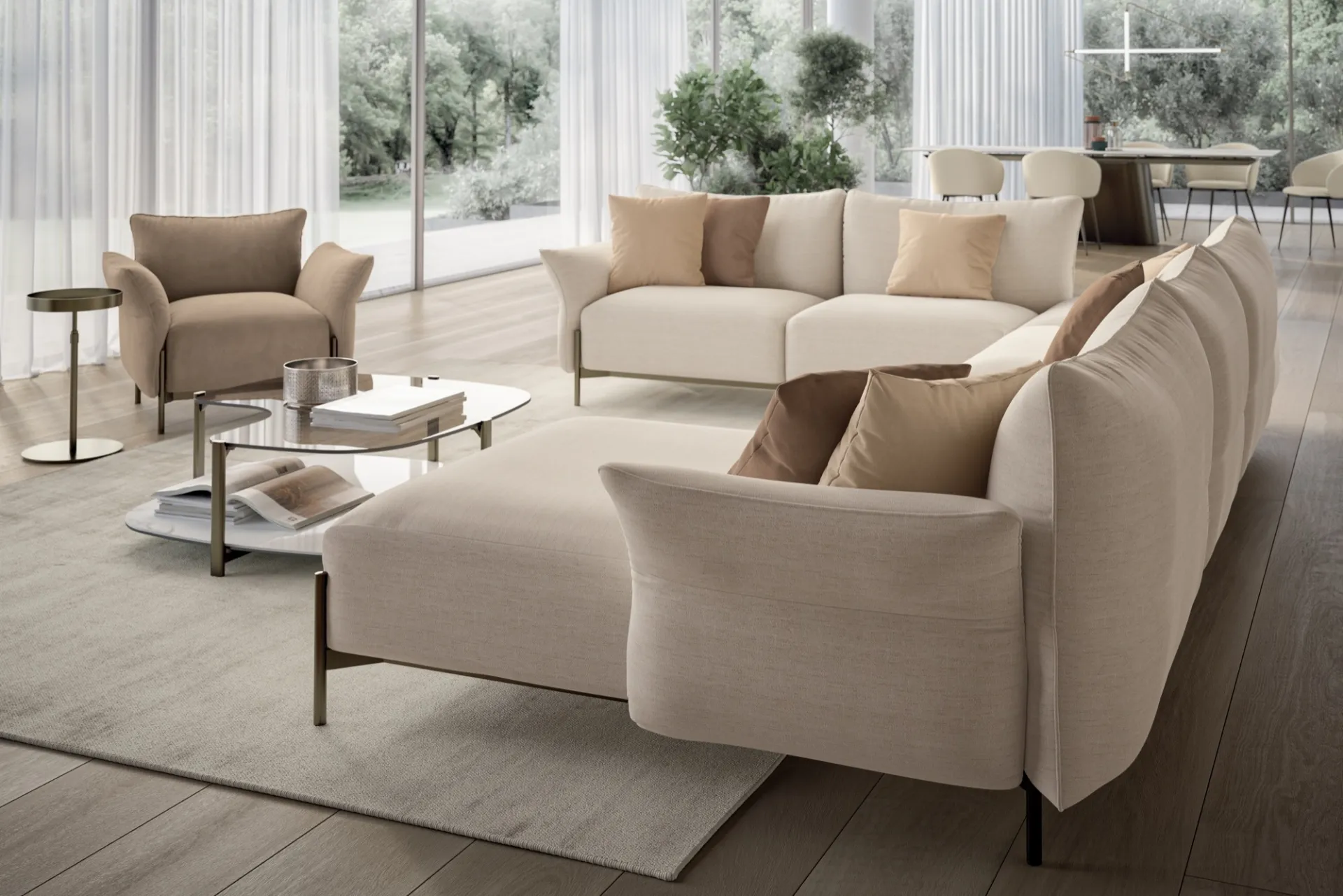 Se vuoi divani per salotti moderni, clicca e leggi di più sul modello Victor in tessuto del brand Bontempi.