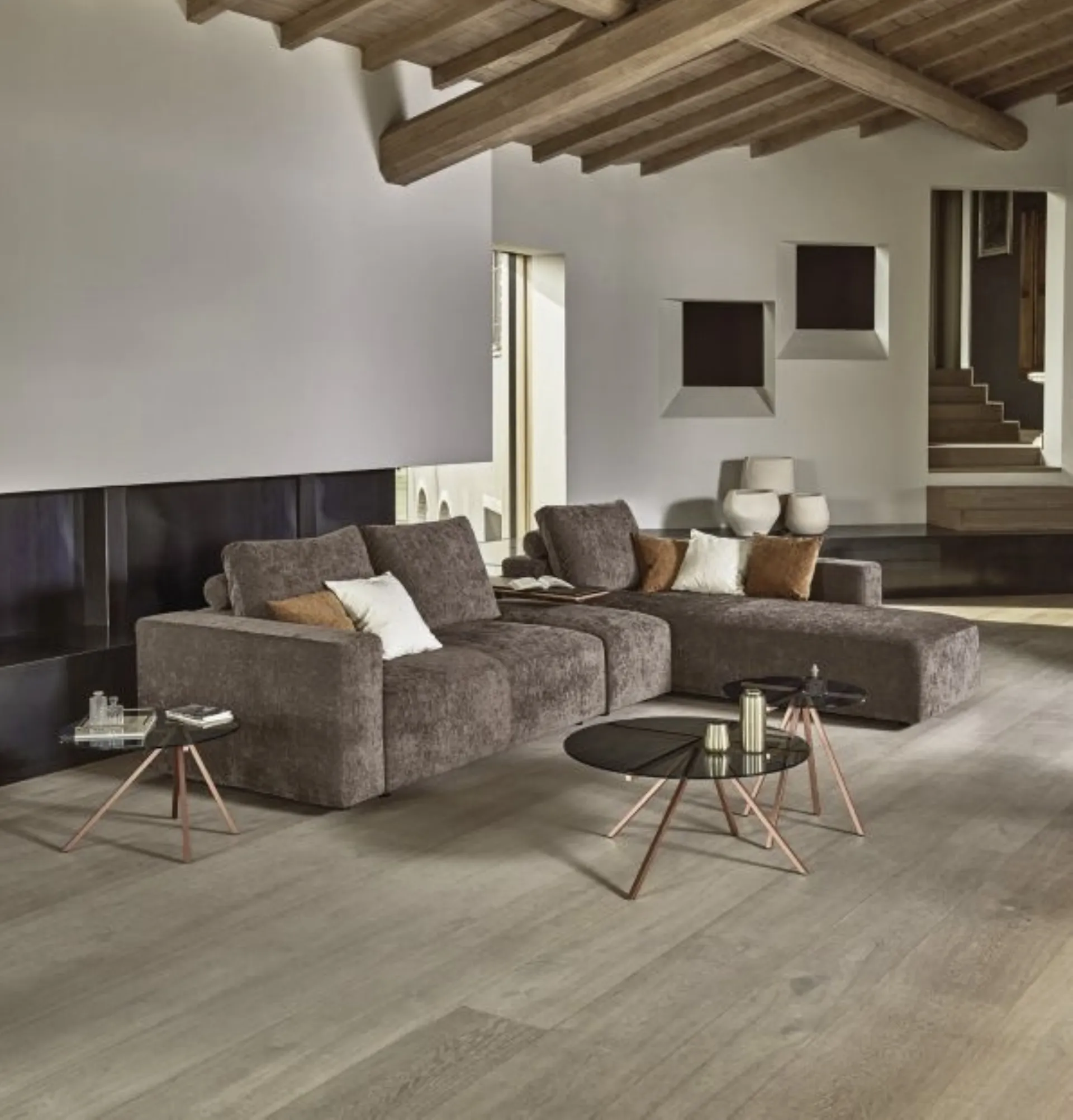 Se vuoi divani per salotti moderni, clicca e leggi di più sul modello Zenit Wall in tessuto del brand Bontempi.
