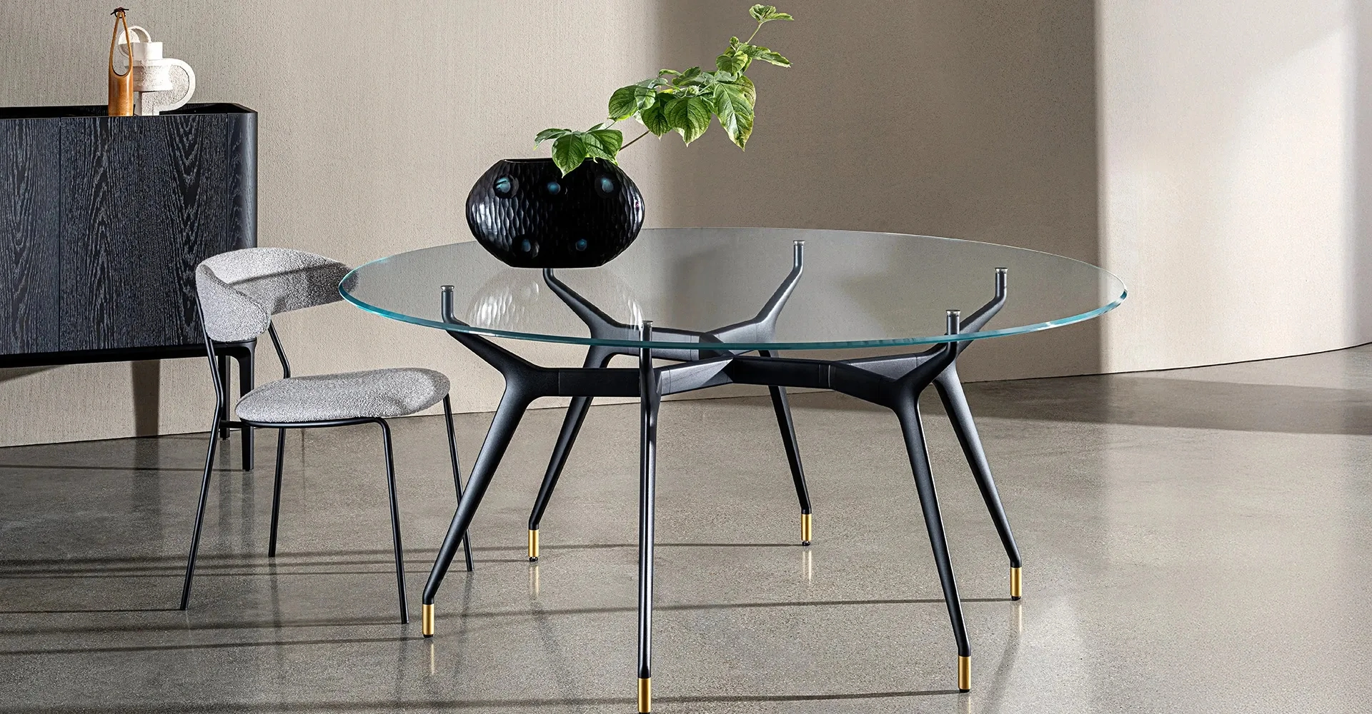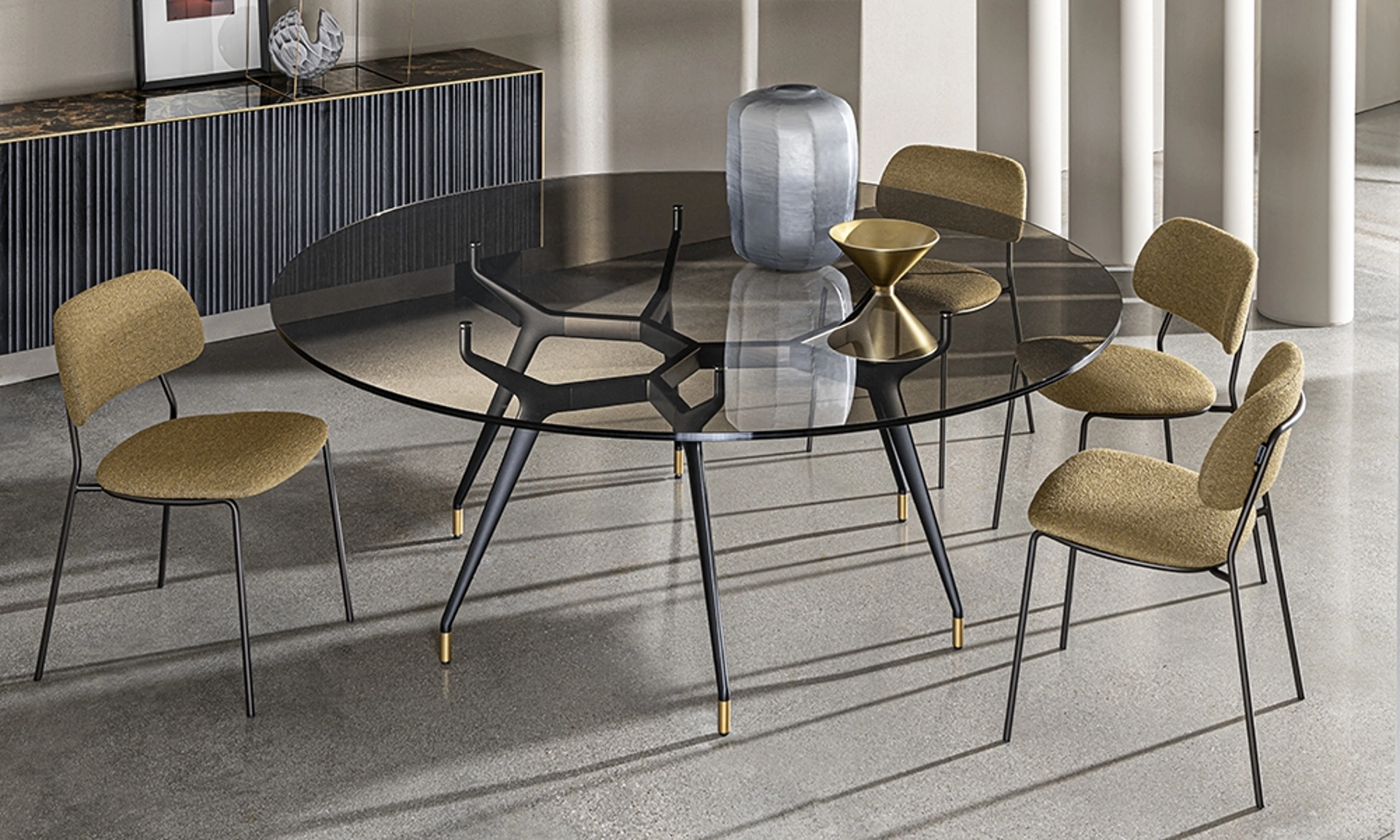 Se vuoi sostituire i pezzi di arredo design che hai in casa o acquistarli per la prima volta, da noi potrai vedere dal vivo le soluzioni più esclusive in commercio. In showroom ti aspetta una ricca gamma di Tavoli fissi dei migliori brand, tra cui anche il modello da pranzo presente in foto. Scegli i mobili ed elementi accessori in vetro dei migliori brand per ultimare con praticità i tuoi locali senza mai dimenticare il valore estetico. Durante l'acquisto del tavolo giusto per te è necessario valutare dimensioni, linee, finiture e stile, per ottimizzare lo spazio con un'ottima resa estetica.