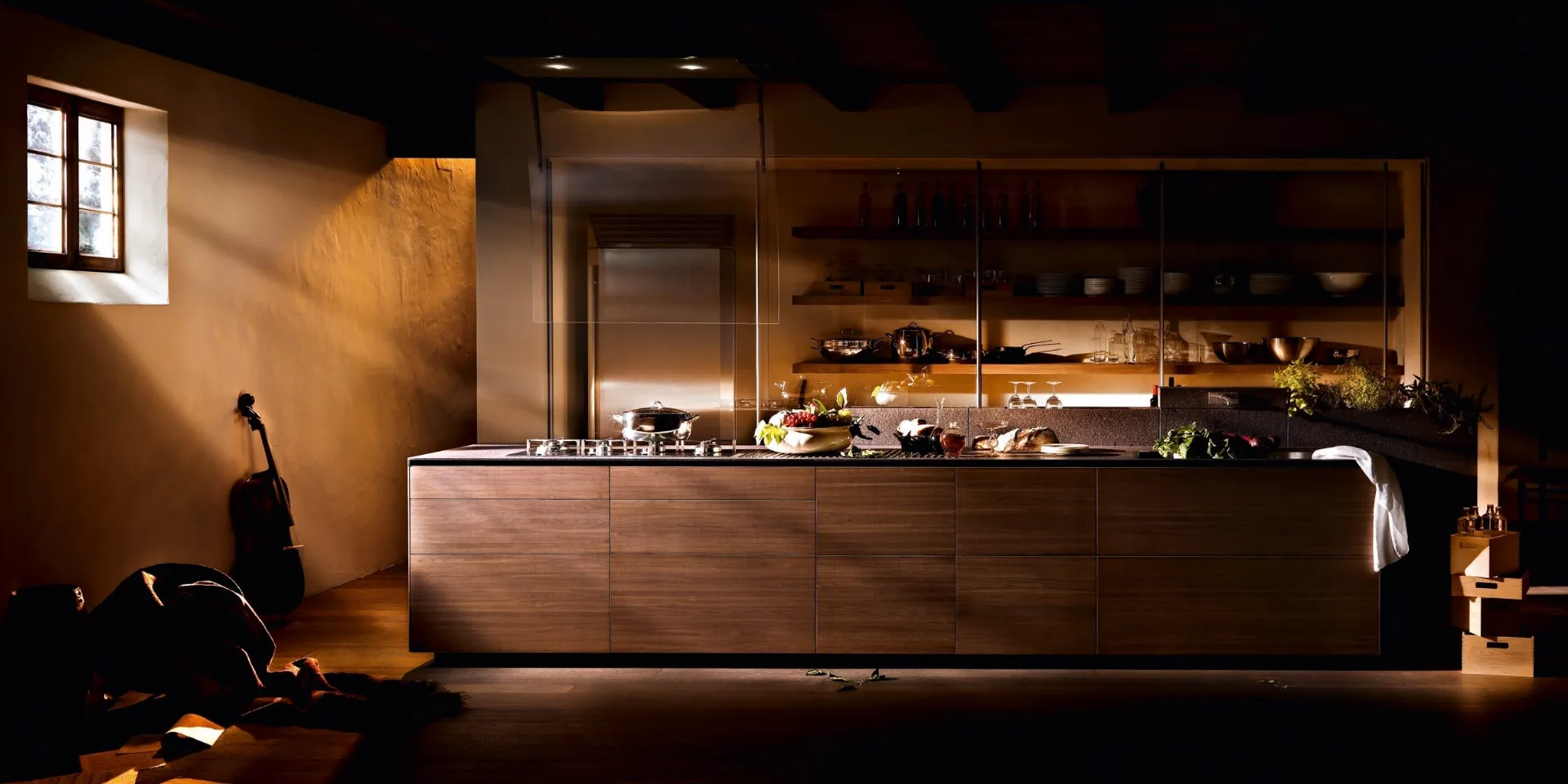 Cerchi una cucina Valcucine? Il modello Artematica Noce Tattile in legno ti sta aspettando nel nostro negozio di Cucine Design con isola.