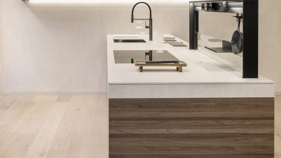 Scopri un ricco catalogo di Cucine Design con penisola: la cucina Genius Loci Noce Canaletto Valcucine è oggi disponibile in legno!