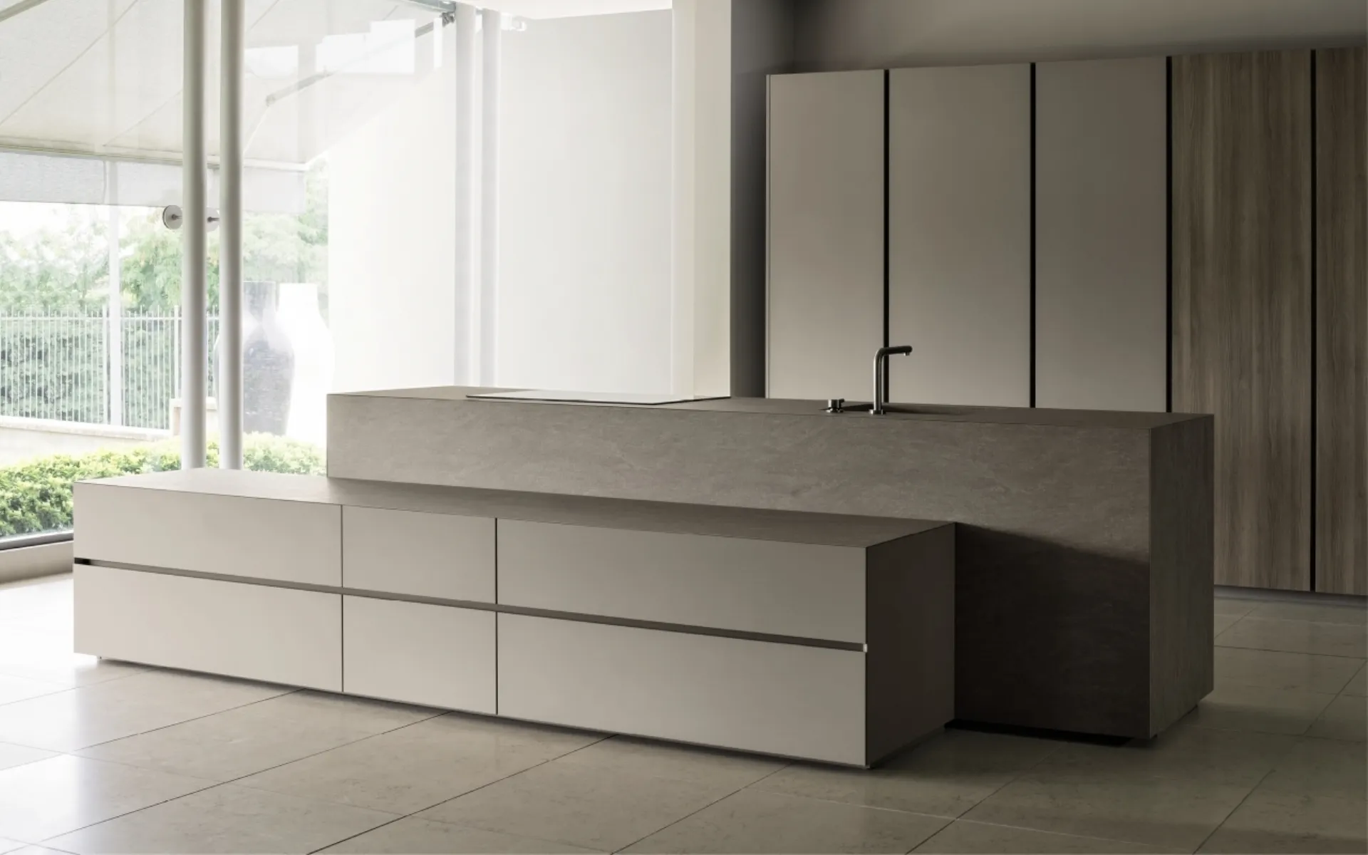 Scopri una ricca gamma di Cucine Design con isola: la cucina Giza laccato con isola Maistri è oggi disponibile in laccato opaco!
