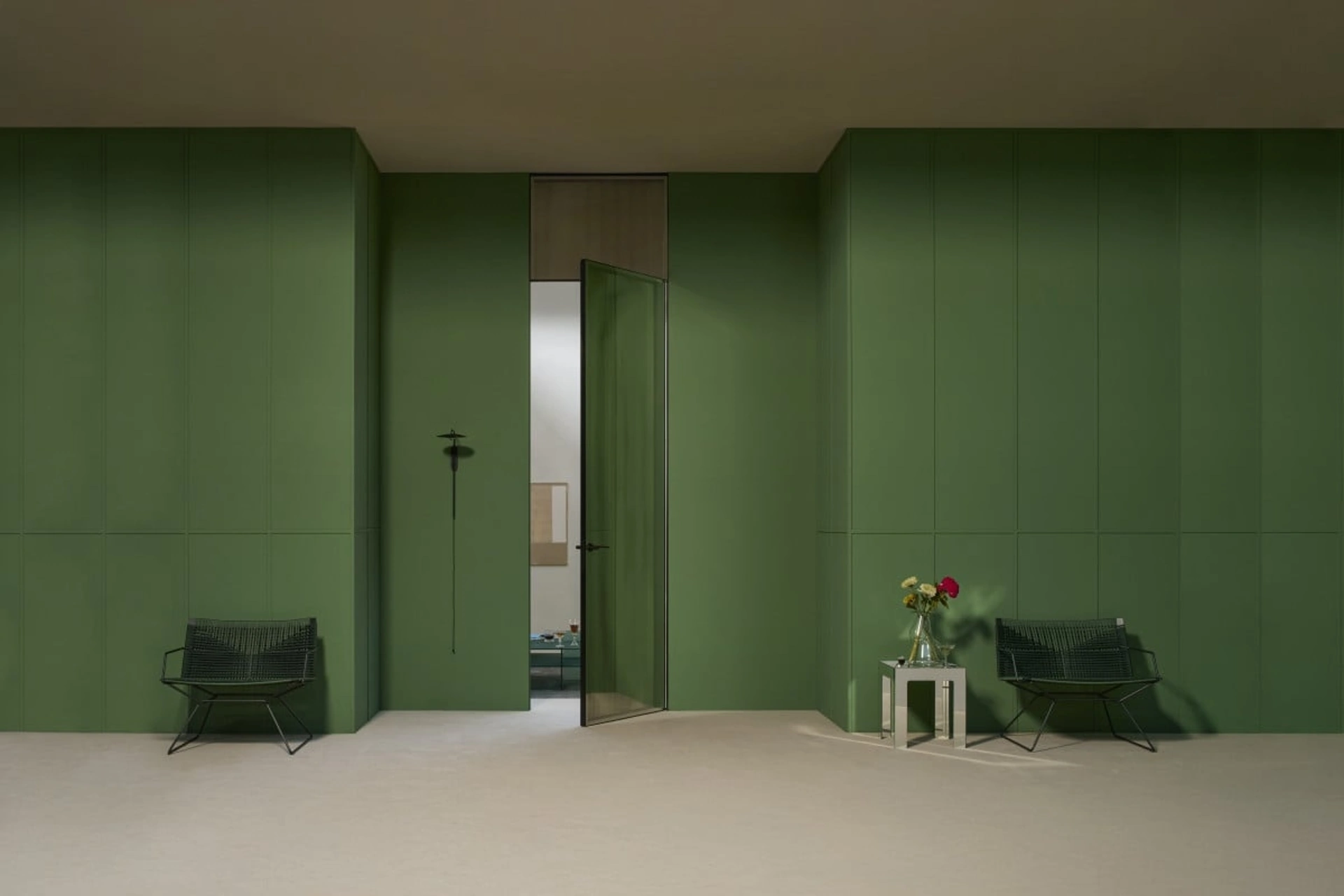 Se vuoi porte da interno a filo muro design, clicca e scopri il modello con telaio in alluminio Aladin Swing Plain Duo di Glas Italia!